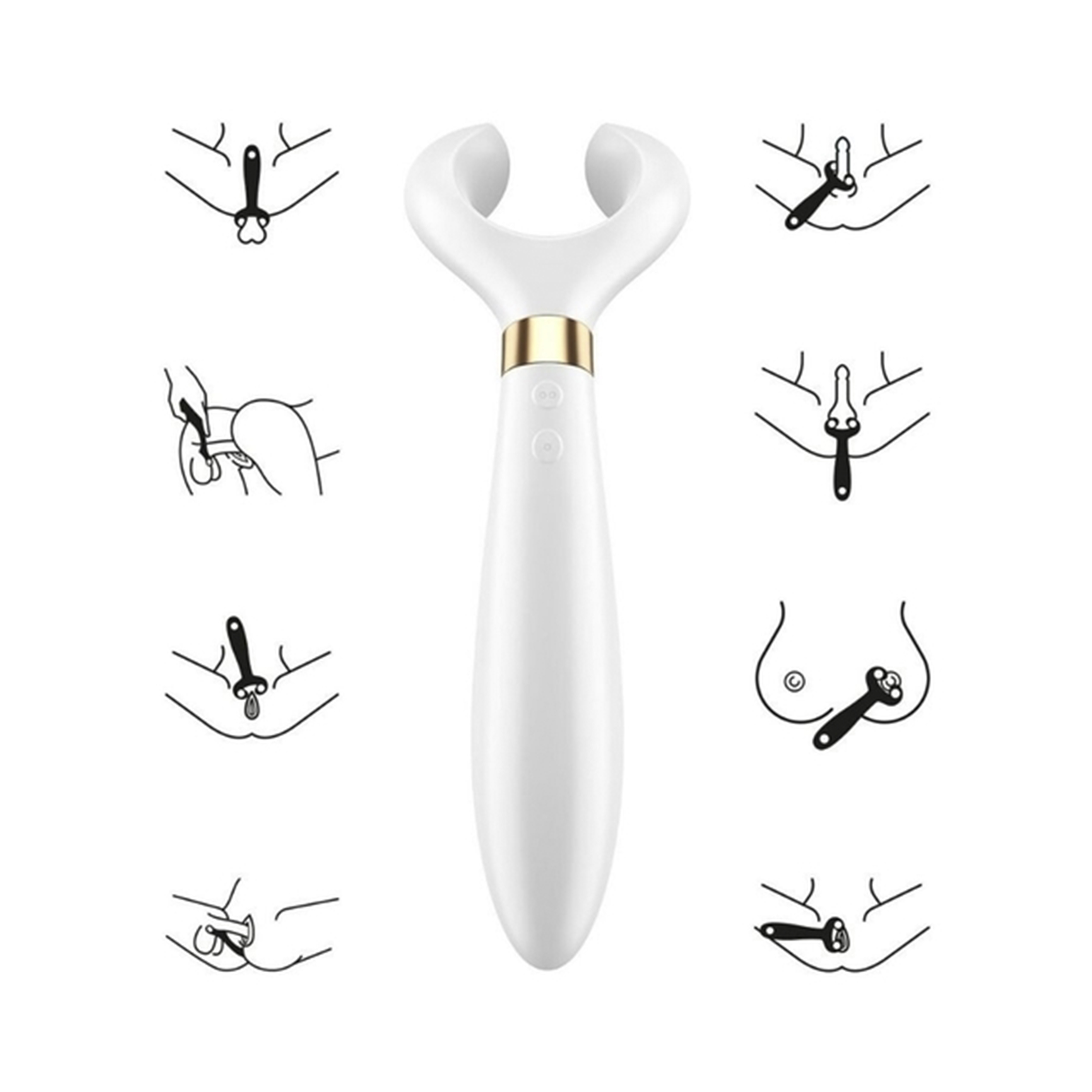 Con más de 33 aplicaciones posibles, este sensual producto de bienestar sexual todo terreno se puede colocar suavemente en los pezones, en el clítoris o en los labios de la vagina, por ejemplo, y estimularlos de forma continua hasta alcanzar un clímax intenso. El suave y delicado eje con su forma curvada se puede introducir cómodamente en la vagina y de esta manera estimular eficazmente el punto G y la parte interna de la vulva de la mujer. En los hombres provoca, gracias a su potente vibración, intensas ondas de estimulación en el glande y en la base del pene. También se puede utilizar en diferentes posiciones sexuales como por ejemplo en la posición del perrito o en la posición del misionero.